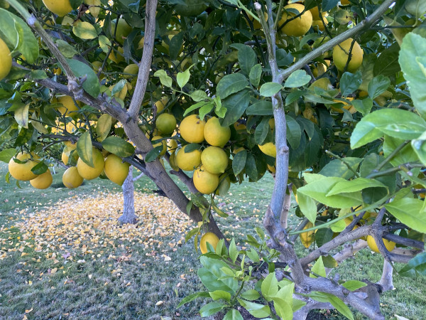 Gratitude to that neighbor … this time with fresh cut holly adorn the meyer lemons up for grabs.