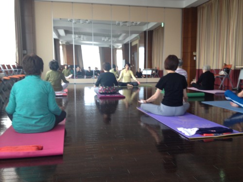 31st floor and filled with LIGHT! Lovely class she leads – oldest student is 85! So refreshing to be in a yoga class where not once did we go into down-dog. At the end, feeling so light and free – different paths on a journey to get to the same place. Need not always have a down-dog to be more than 100% satisfied, is a lesson learned in her class.