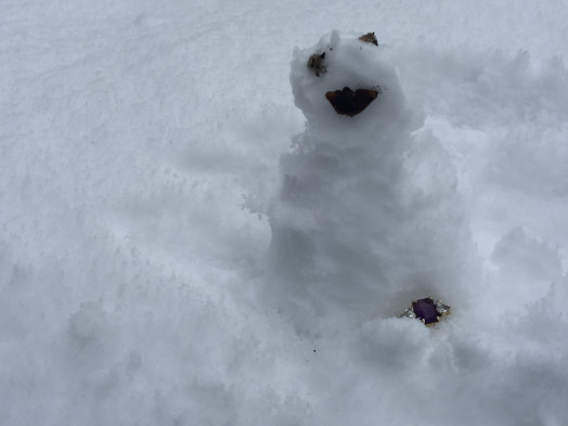 Still one must make a snow man – a miniature one as with no mittens … toooooo cold!