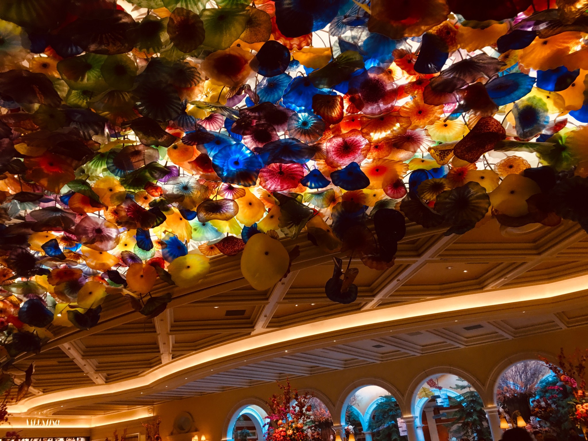 Committed no sins in this Sin City – Rather … walked over 20,000 steps; climbed 18 floors according to iPhone health monitor – and felt gratitude for the opportunity to explore this over the top place. Then even more grateful to get home. Glam and glitz actually makes me feel uncomfortable- rather prefer simplicity and nature but … man made depictions captured above – display made with flowers and … jellyfish like glass art covering grand ceilings.  To be under Chihuly … was a treat.  Filled gratitude for the air quality here … we take our breath, our air for granted but when the wild fires of California is only 35% contained, we are acutely aware … aware of each breath we take.