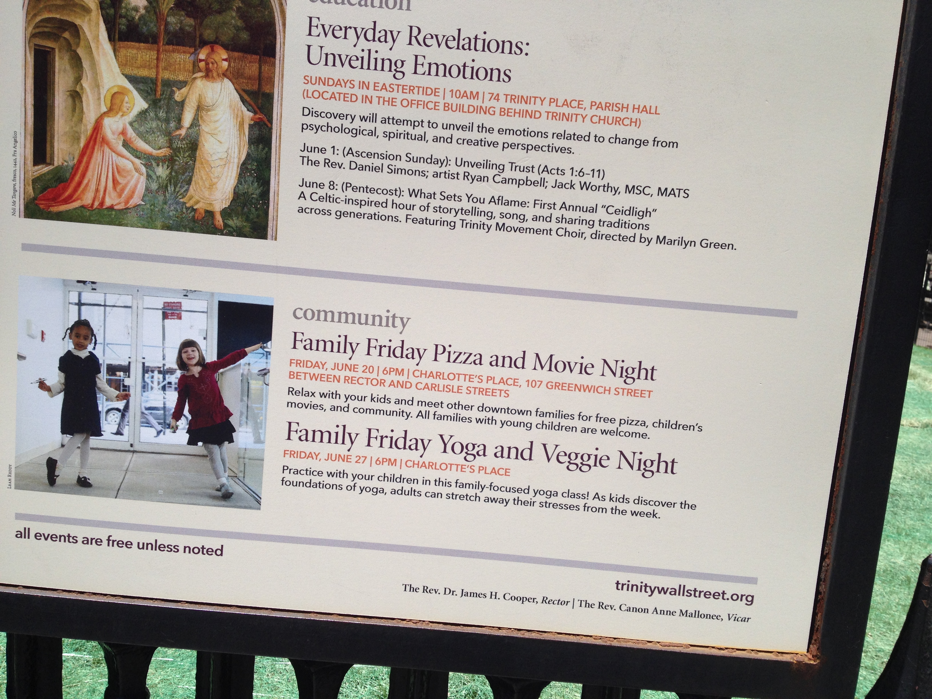 Child rearing can be challenging – Family Yoga available at Trinity on Wall Street – how about that? Christian church offering yoga practice to bring people together, strengthen ties and turn up the …JOY:) Pure Joy – it’s all good – Nice!