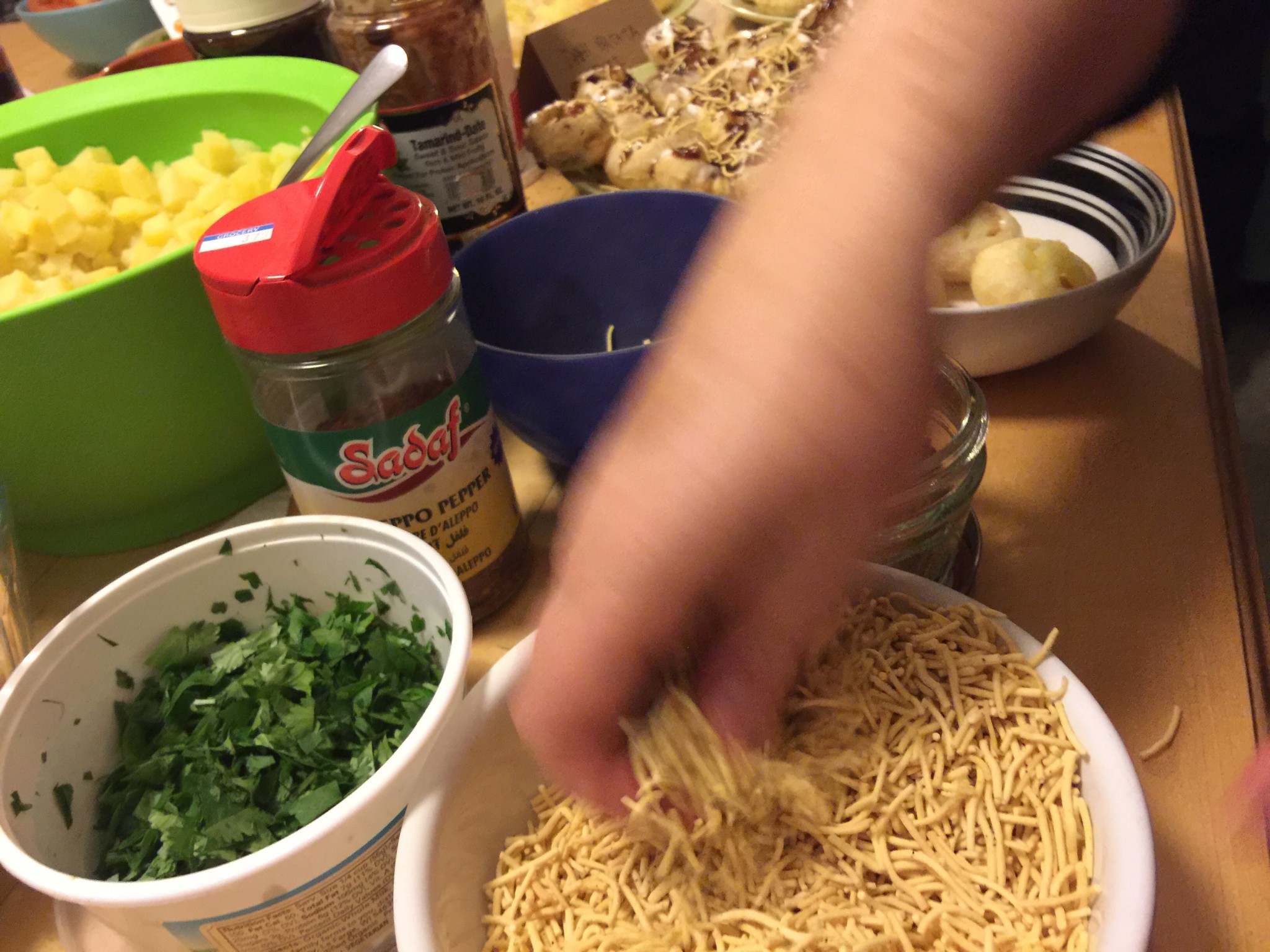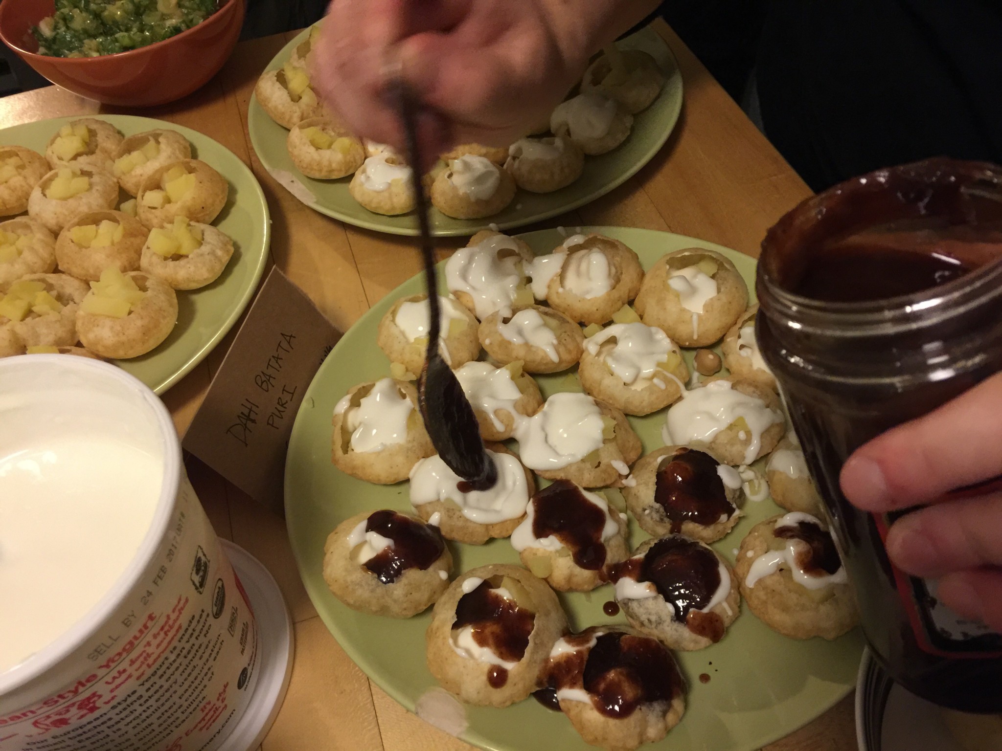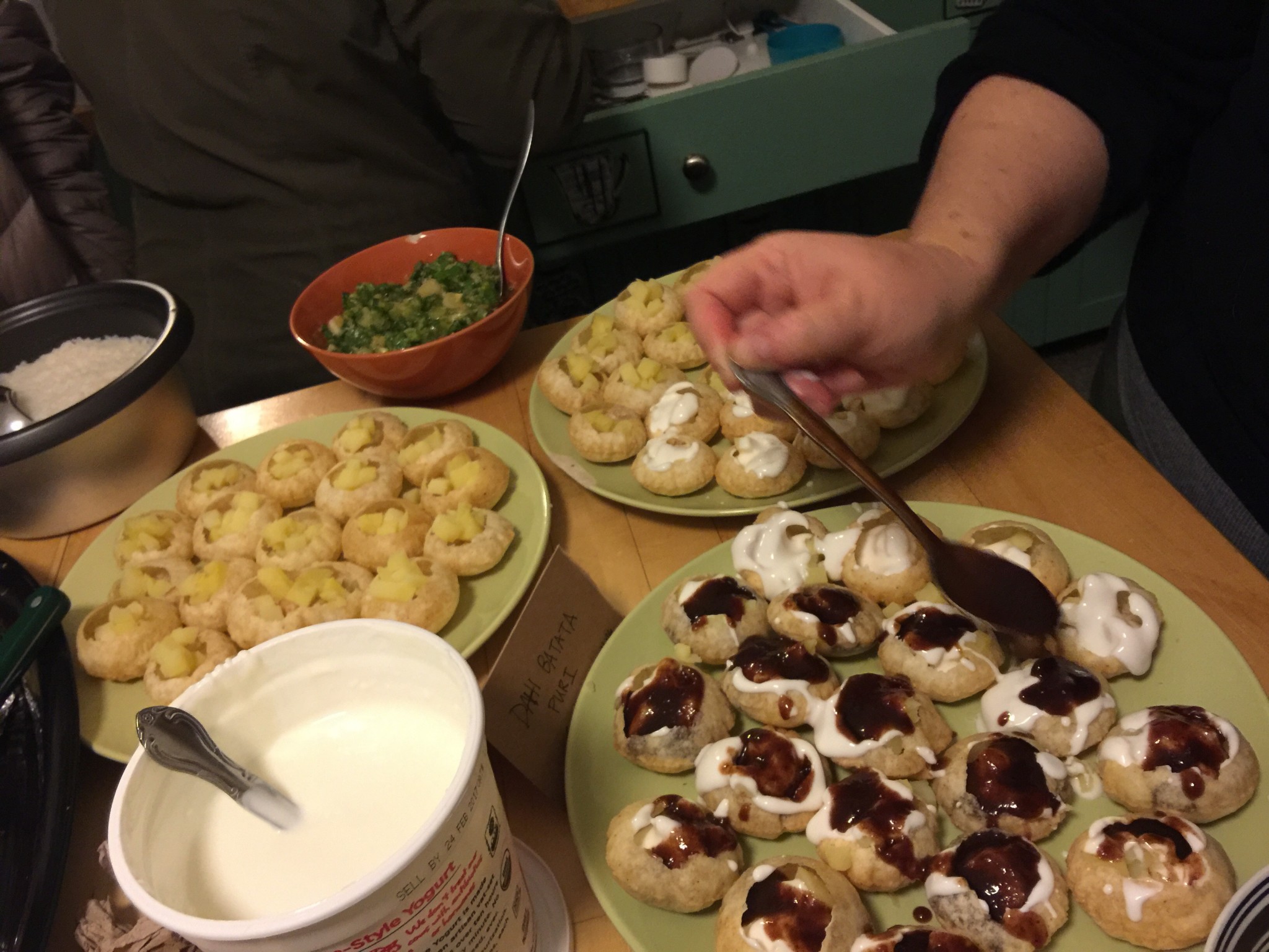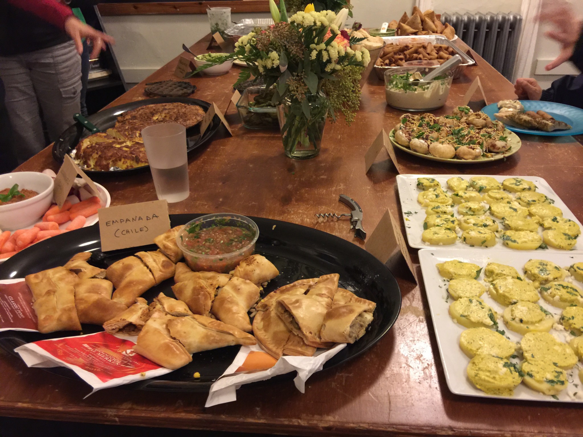 The appetizers table with mouthwatering international dishes so fitting a celebration of a person so adventurous and well traveled.