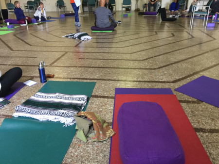 (This is a photo from the labyrinth circle on which we practice on at Niroga Institute. Institute sounds rather institutional but it’s actually a very low key church/auditorium. It’s nothing fancy and that’s why I love the vibe there for we create it. I love the yogis I share this journey with. Teachers are all excellent and the anchoring founder, B.K.’s presence is felt by all. So blessed to be part of this!)