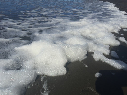 Foamy suds that bubbly waves leave on the beaches in Northern California …sinking your feet into them. Ahhhh Earthing with the bubbles feels good !