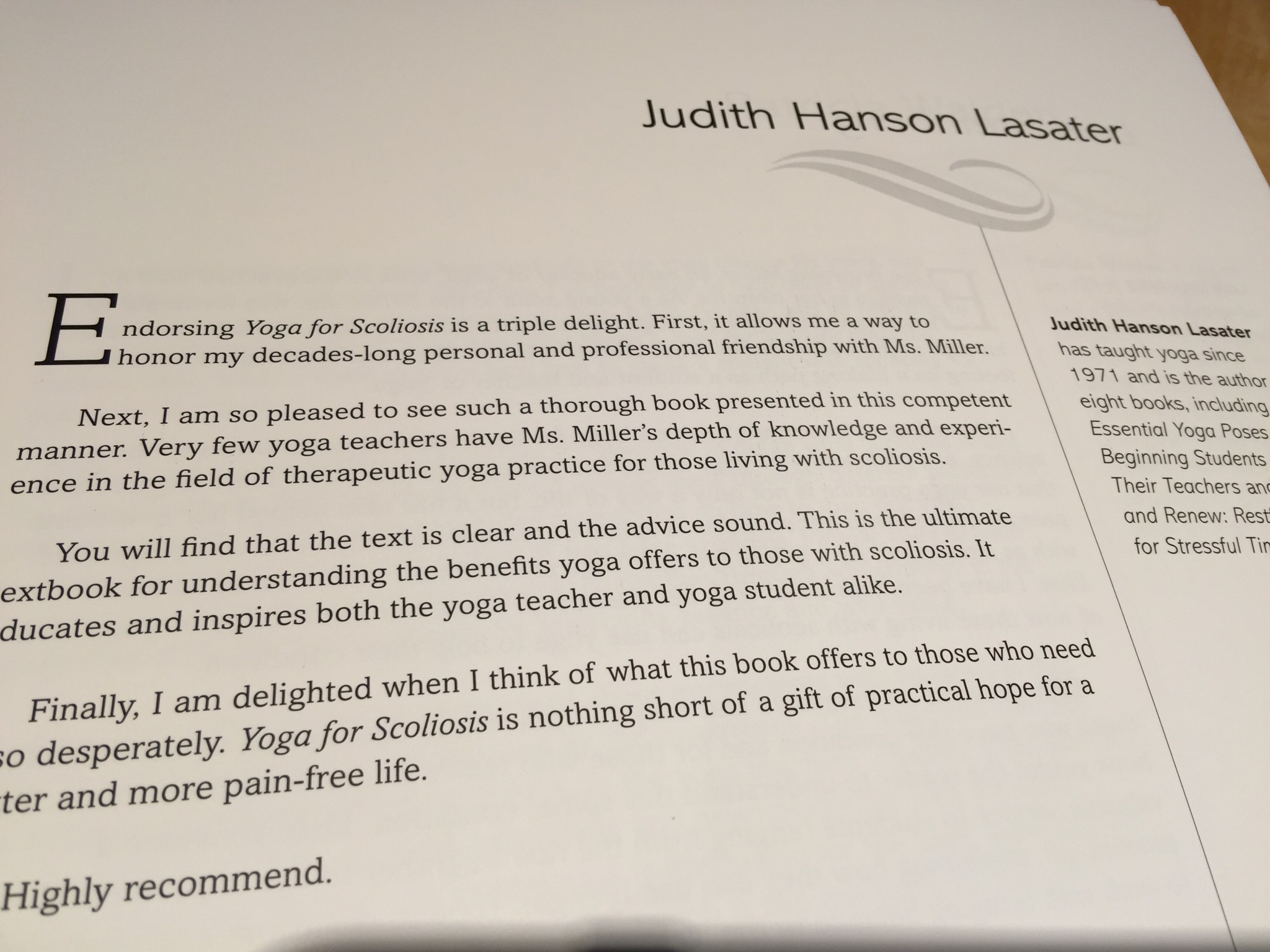 One of my cohorts in my yoga therapist training shared a protocol that piqued my curiosity. She shared that her sister was born with Scoliosis – Scoliosis? What’s that? The condition is more common than you might think – and according to some studies, the number of sufferers is said to be on the rise. Some famous people with this condition are Shailene Woodly, late-Elizabeth Taylor, Kurt Cobain, Liza Minnelli, YoYo Ma … Modonna’s daughter, Lourdes – really? (from Ranker.com) to name a few. So it’s not so uncommon and studying the various divination from the “normal” spine deepens yoga teachers’ understanding of the spinal column in general, whether curved “S” or “?”, the whole wide range of variations. We can work with the students to bring about alignment and balance whatever unique structure one was gifted with. I was thinking all this when the name, EliseBrowning Miller, a senior Iyengar yoga teacher, came up. Luck would have it that she’s holding her 10 hours training this weekend so…this weekend I am learning so much from yet another master teacher.